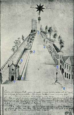 | Desenho do início do século XIX. à esquerda, a capela da Senhora da Guia. |