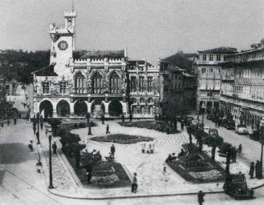 | Pormenor da fachada dos Paços do Concelho de Guimarães, no início do século XX e na actualidade. |