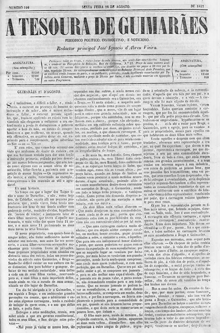 A Tesoura de Guimarães, 28 de Agosto de 1857