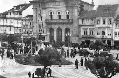 Maio de 1940, a estátua de D. Afonso Henriques, que se encontrava no Toural